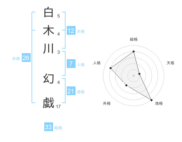 白木川 幻戯さんを姓名の画数から五運を鑑定