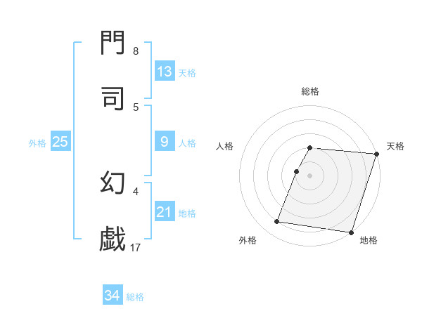 門司 幻戯さんの地格は21画の5点!