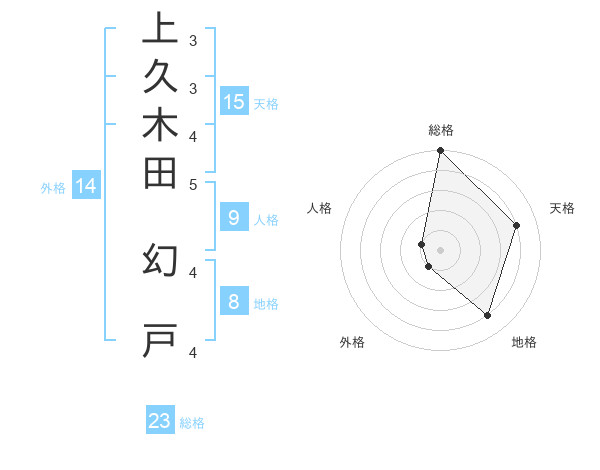上久木田 幻戸さんを姓名の画数から五運を鑑定