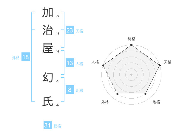 加治屋 幻氏さんを姓名の画数から五運を鑑定