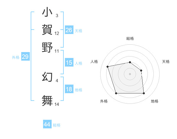 小賀野 幻舞さんの総格は44画の2点!