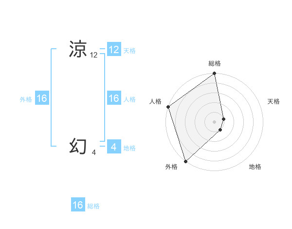 涼 幻さんの外格は16画の5点!