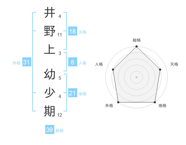 井野上 幼少期さんを姓名の画数から五運を鑑定