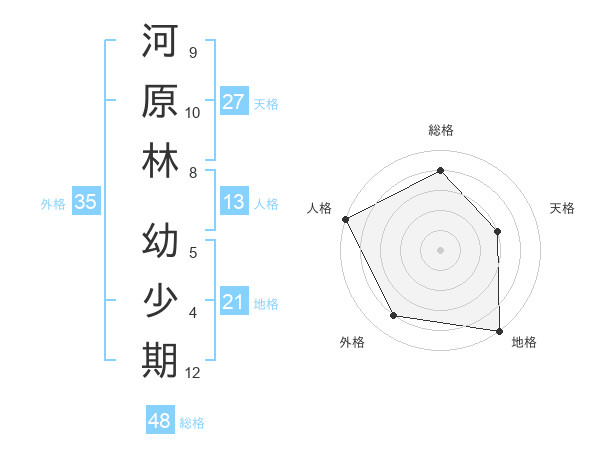 河原林 幼少期さんの総格は48画の4点!