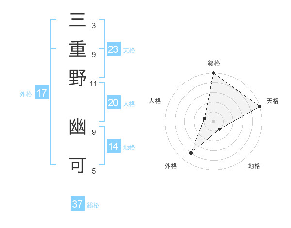 三重野 幽可さんの総格は37画の5点!