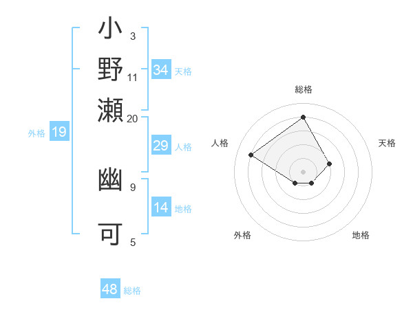 小野瀬 幽可さんを姓名の画数から五運を鑑定
