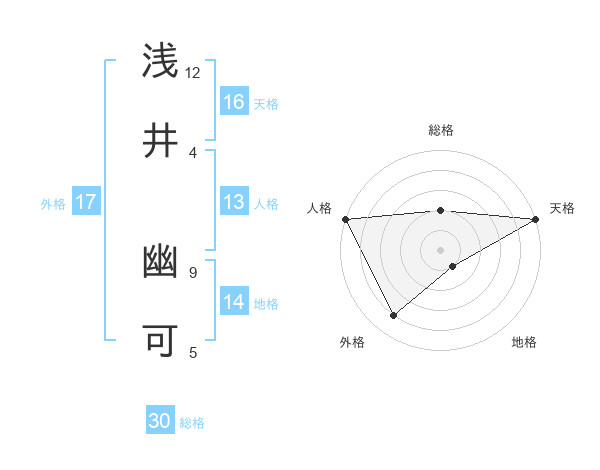浅井 幽可さんの天格は16画の5点!