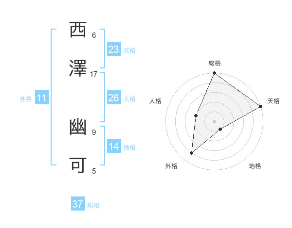 西澤 幽可さんの総格は37画の5点!