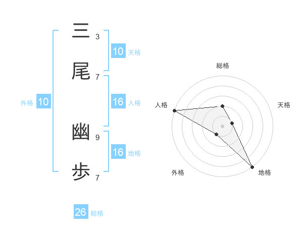 三尾 幽歩さんを姓名の画数から五運を鑑定
