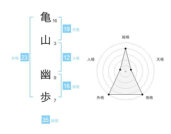 亀山 幽歩さんを姓名の画数から五運を鑑定