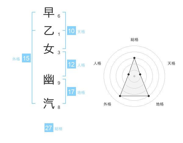早乙女 幽汽さんを姓名の画数から五運を鑑定