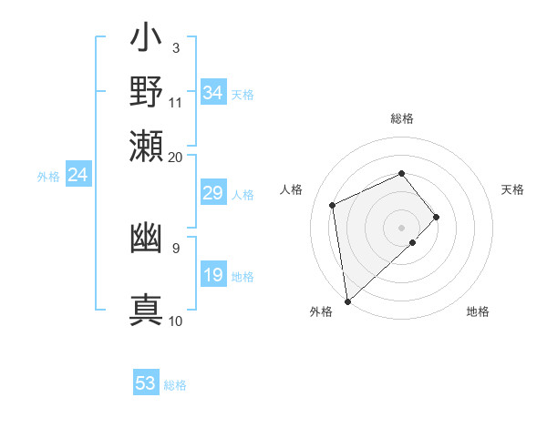 小野瀬 幽真さんを姓名の画数から五運を鑑定