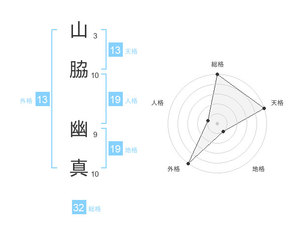 山脇 幽真さんを姓名の画数から五運を鑑定