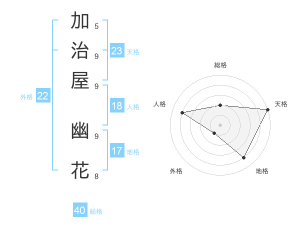 加治屋 幽花さんを姓名の画数から五運を鑑定