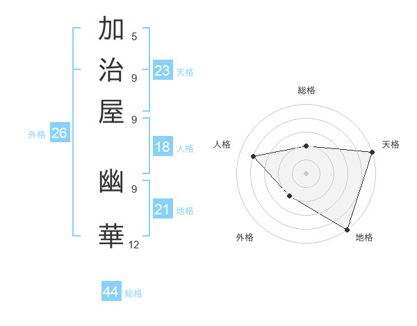 加治屋 幽華さんを姓名の画数から五運を鑑定