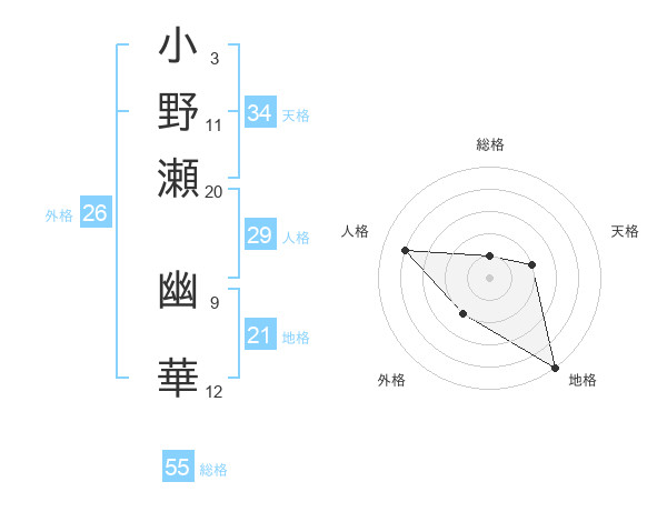 小野瀬 幽華さんを姓名の画数から五運を鑑定