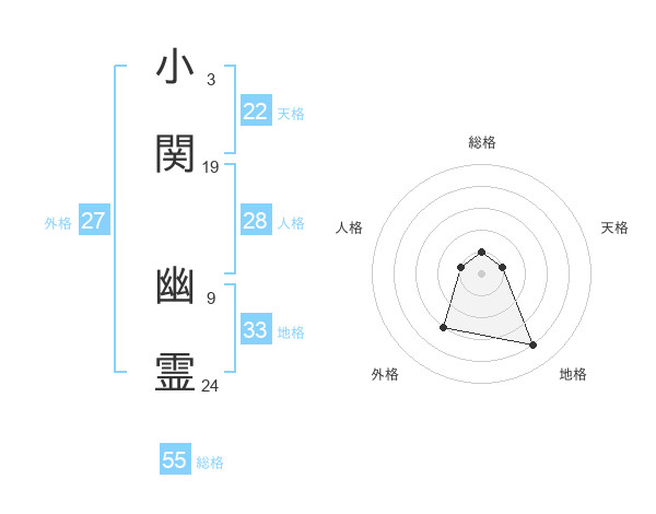 小関 幽霊さんの総格は55画の1点!