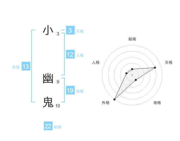 小 幽鬼さんの総格は22画の1点!