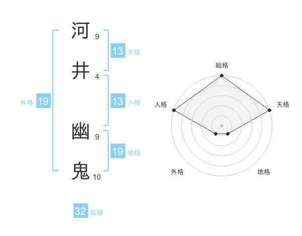 河井 幽鬼さんを姓名の画数から五運を鑑定