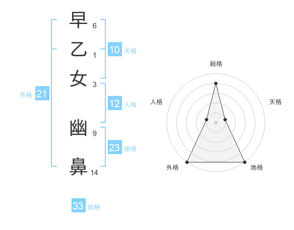 早乙女 幽鼻さんの総格は33画の4点!