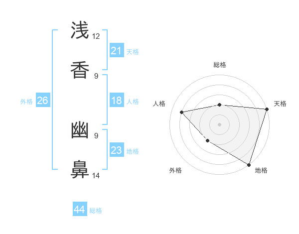 浅香 幽鼻さんを姓名の画数から五運を鑑定