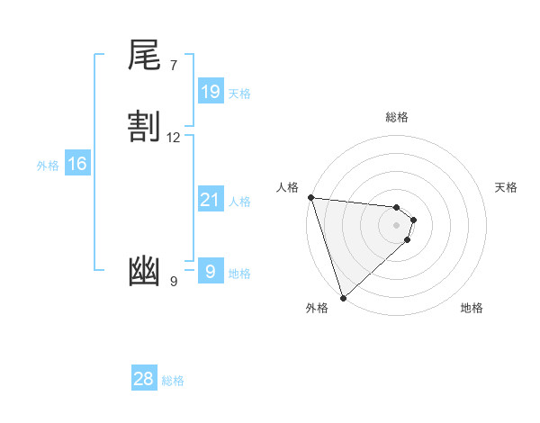 尾割 幽さんの総格は28画の1点!
