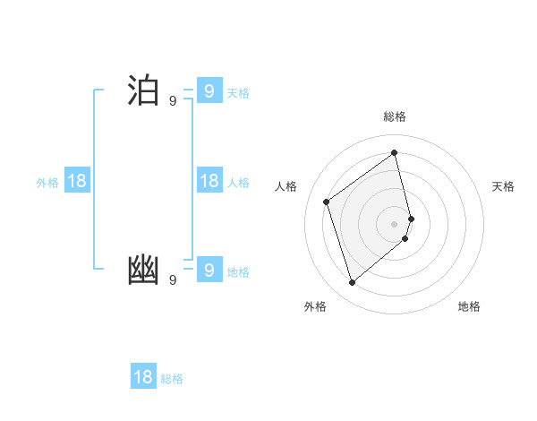 泊 幽さんの総格は18画の4点!