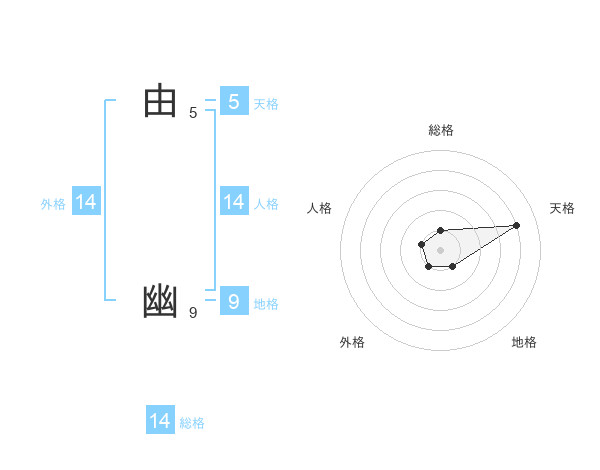 由 幽さんの総格は14画の1点!