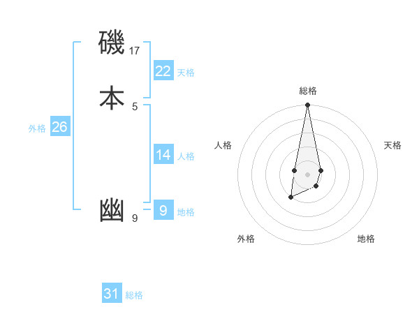 磯本 幽さんの総格は31画の5点!