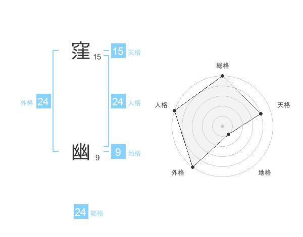 窪 幽さんの総格は24画の5点!