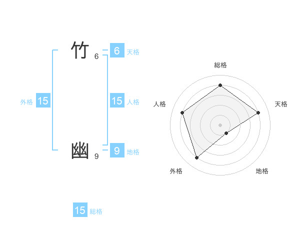 竹 幽さんの総格は15画の4点!