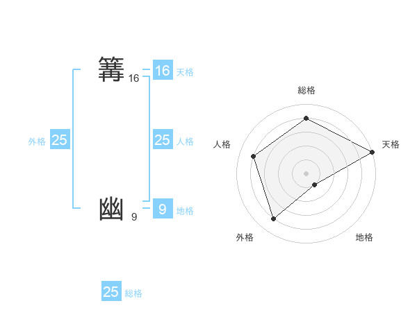 篝 幽さんの総格は25画の4点!