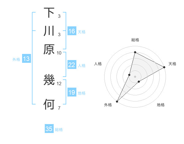 下川原 幾何さんを姓名の画数から五運を鑑定