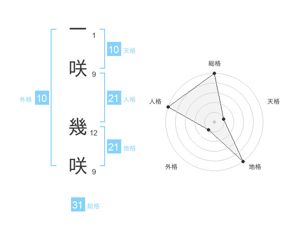 一咲 幾咲さんを姓名の画数から五運を鑑定