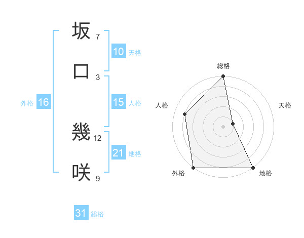 坂口 幾咲さんを姓名の画数から五運を鑑定