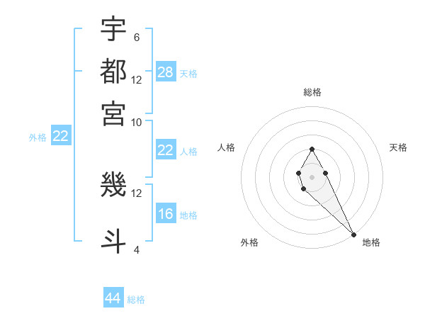 宇都宮 幾斗さんを姓名の画数から五運を鑑定