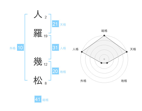 人羅 幾松さんを姓名の画数から五運を鑑定