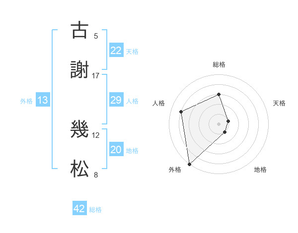 古謝 幾松さんを姓名の画数から五運を鑑定