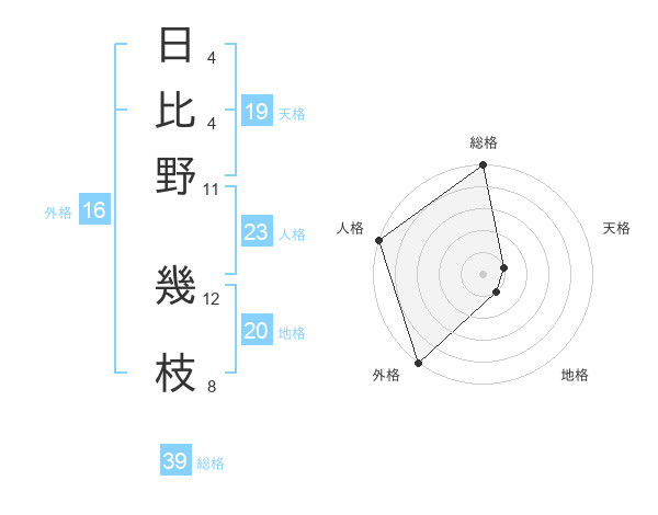 日比野 幾枝さんの外格は16画の5点