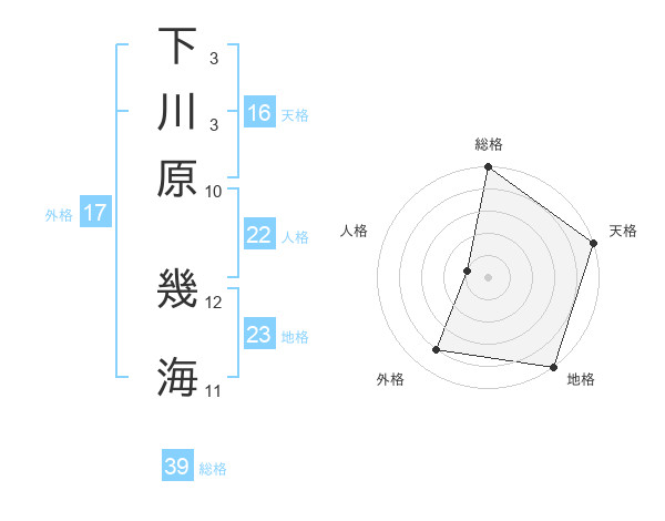 下川原 幾海さんを姓名の画数から五運を鑑定