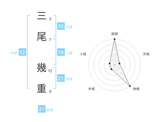 三尾 幾重さんを姓名の画数から五運を鑑定