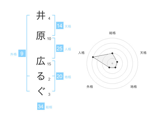 井原 広るぐさんを姓名の画数から五運を鑑定