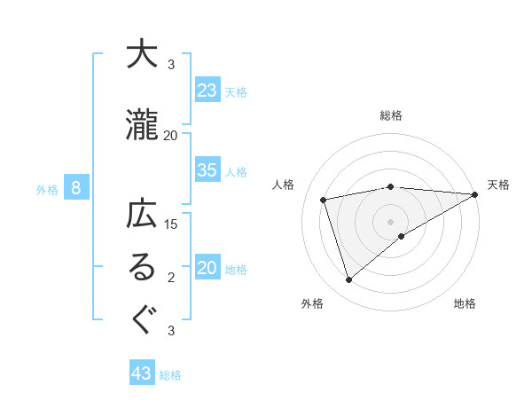大瀧 広るぐさんを姓名の画数から五運を鑑定