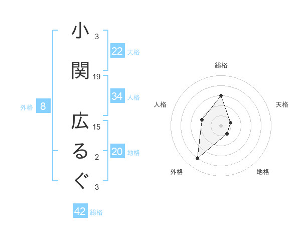 小関 広るぐさんの地格は20画の1点!