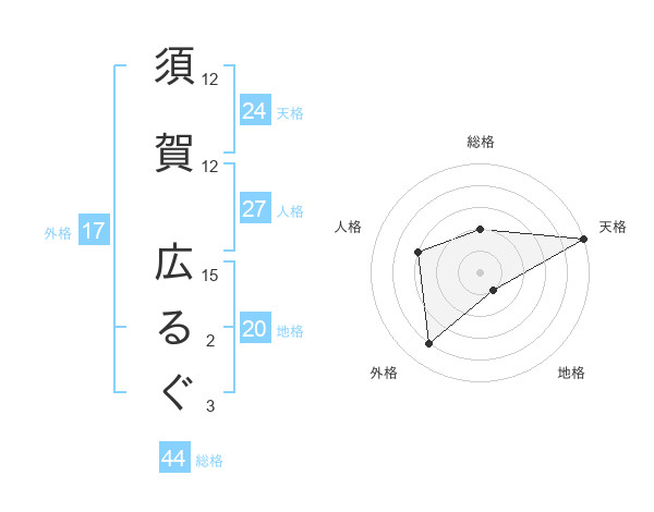 須賀 広るぐさんを姓名の画数から五運を鑑定