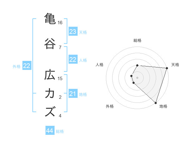 亀谷 広カズさんの総格は44画の2点!