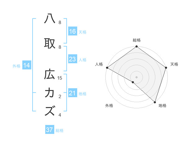 八取 広カズさんの地格は21画の5点!