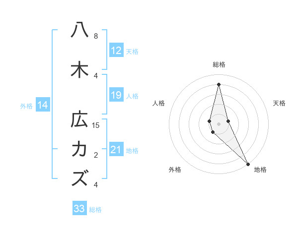八木 広カズさんの総格は33画の4点!