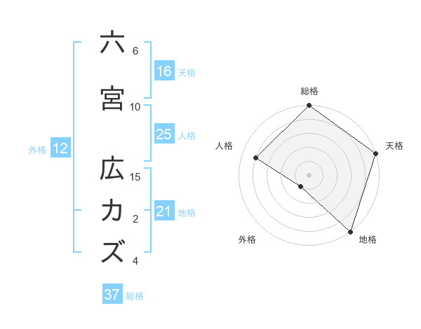 六宮 広カズさんの総格は37画の5点!