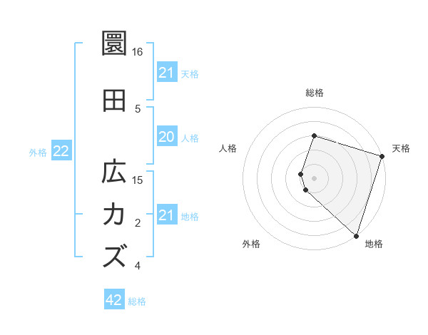 圜田 広カズさんを姓名の画数から五運を鑑定